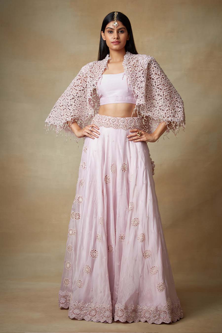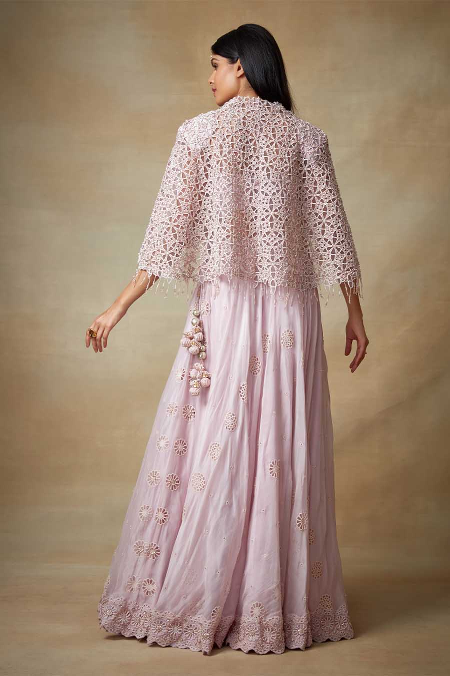 Pink Sequin Cape with Lehenga