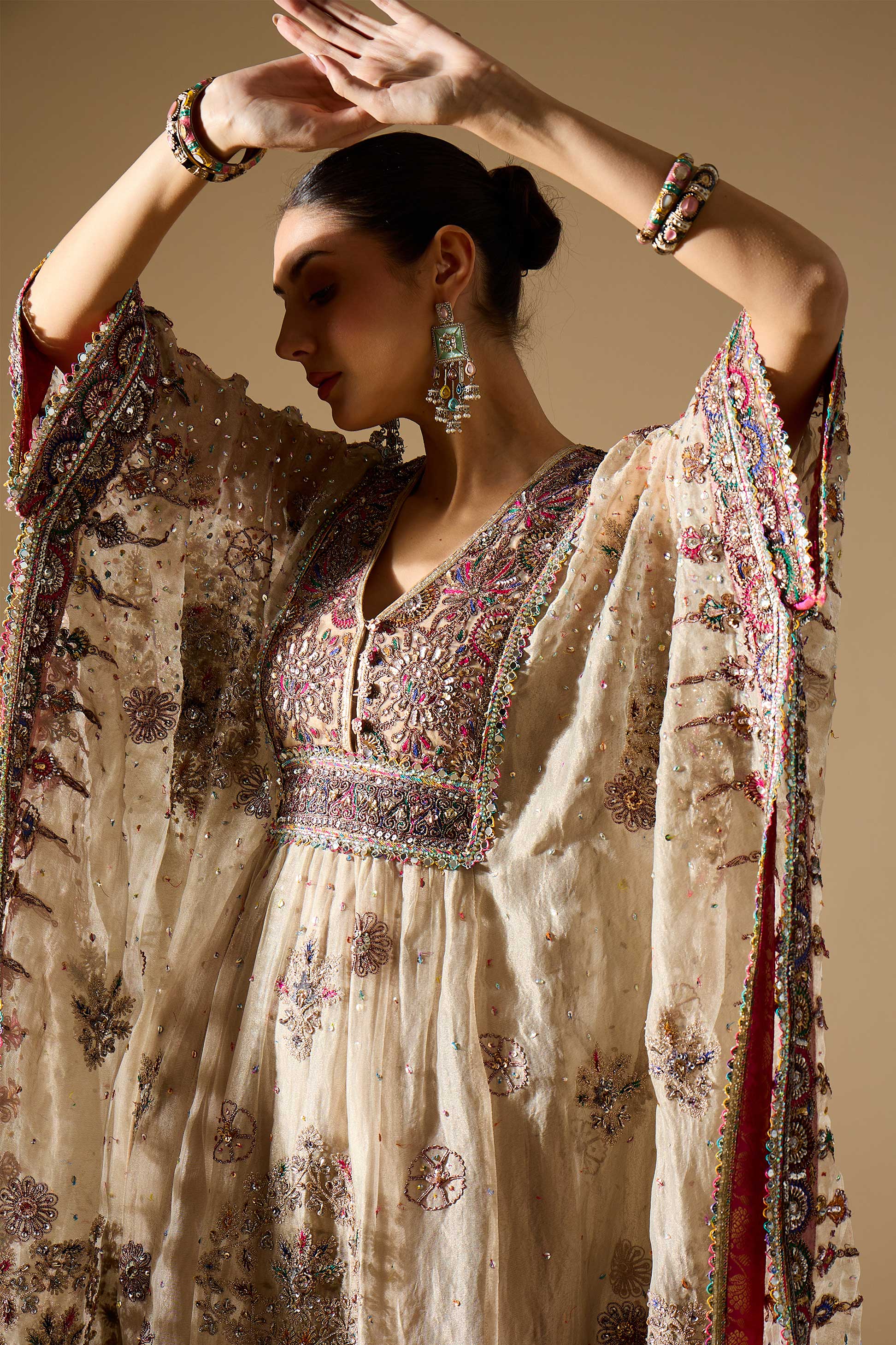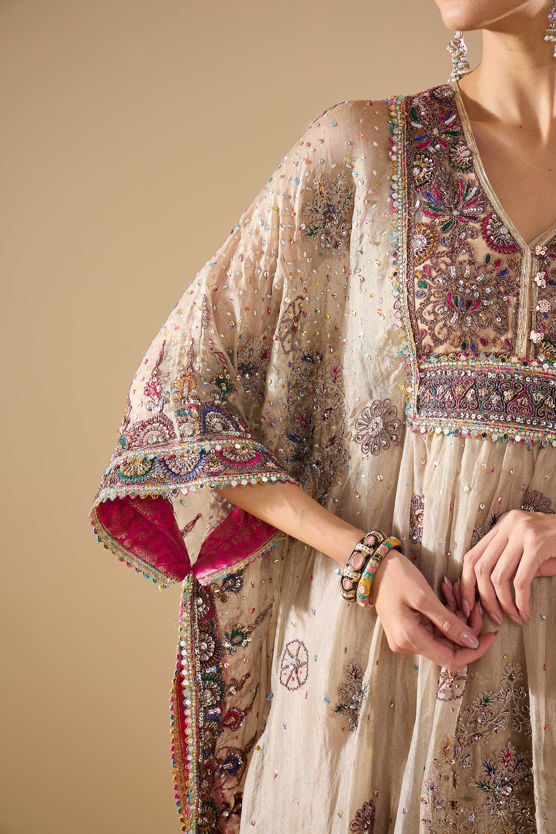 • Embroidery: Heavy metallic, multicolour sequin & thread work